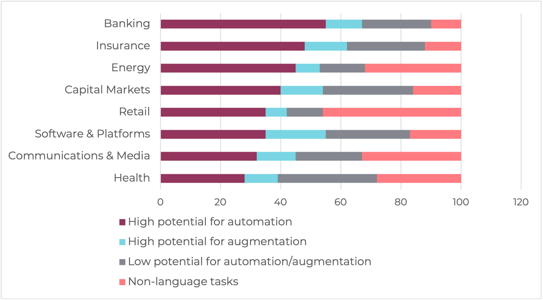 Source: Accenture/Statista (Share of working hours in selected industries in the U.S. that could be automated/augmented by the use of AI)
